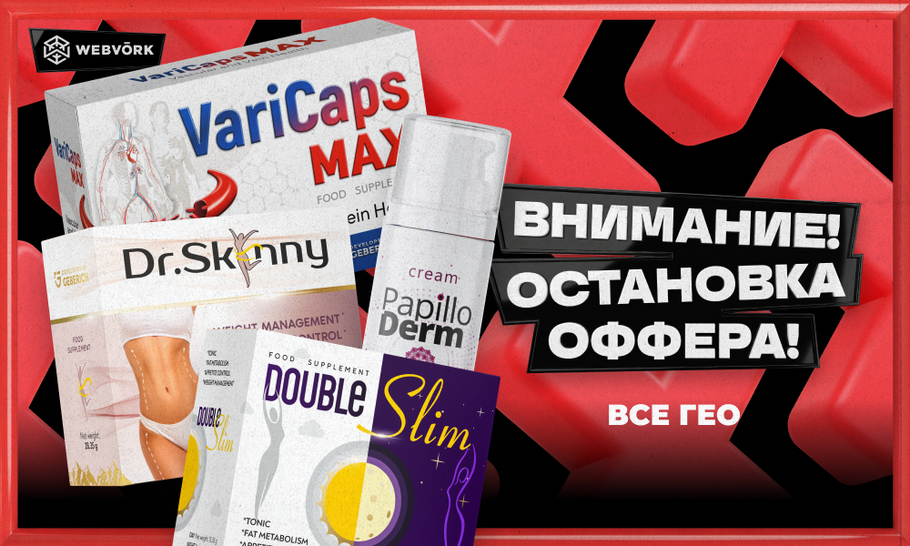 Друзья, офферы Dr.Skinny, Varicaps Max, Double Slim и Papilloderm Cream останавливают работу по всем ГЕО.